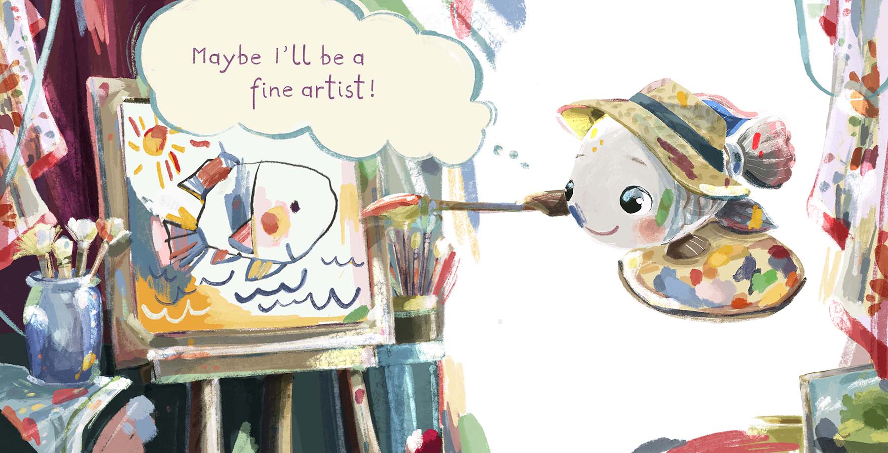I’ve written the book’s story and painted all the illustrations digitally on Adobe Photoshop, using a Wacom Cintiq Tablet and Kyle T.Webster brushes.